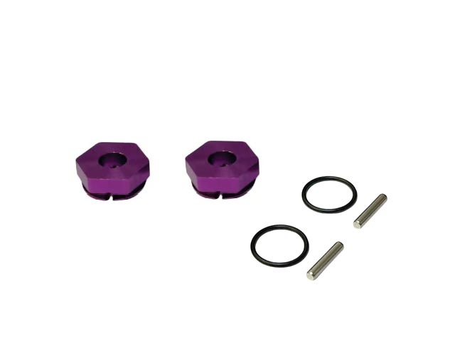ピンの抜け防止構造を備えたアルミ製六角ハブです。六角ハブをアクスルシャフトに取付後、付属のOリングでピンを止めるだけの簡単構造!!【2個入】 (ご注意)