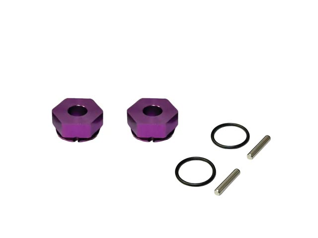 ピンの抜け防止構造を備えたアルミ製六角ハブです。六角ハブをアクスルシャフトに取付後、付属のOリングでピンを止めるだけの簡単構造!!【2個入】 (ご注意)