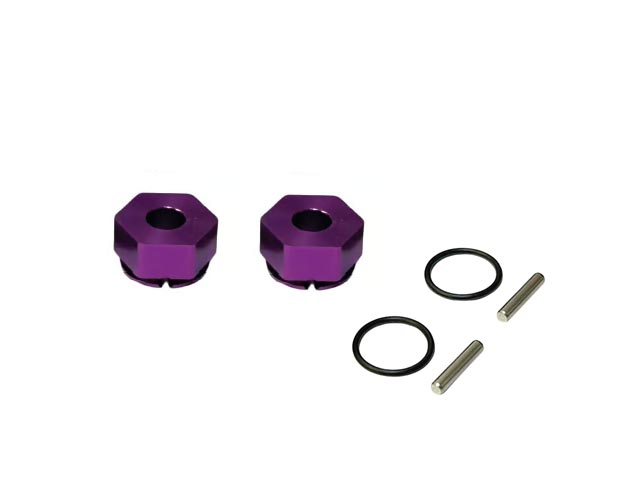 ピンの抜け防止構造を備えたアルミ製六角ハブです。六角ハブをアクスルシャフトに取付後、付属のOリングでピンを止めるだけの簡単構造!!【2個入】 (ご注意)
