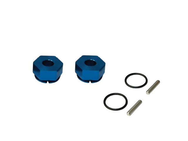 ピンの抜け防止構造を備えたアルミ製六角ハブです。六角ハブをアクスルシャフトに取付後、付属のOリングでピンを止めるだけの簡単構造!!【2個入】 (ご注意)