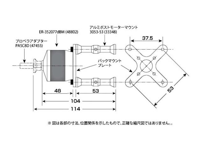 サイズはTahmazo製ブラシレスモーターER352077dBMに適合する3053-53(ポスト長53mm)。