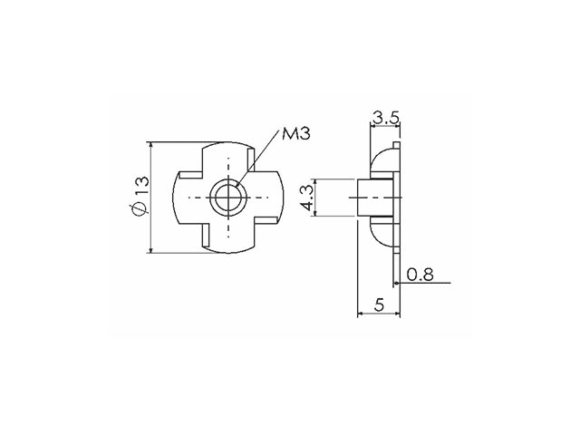 3mm爪付きナット(小)よりツバの部分が大きく、厚いので、より強度を必要とする場合に最適です。