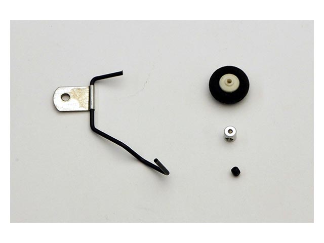 2車輪式の中小型機の尾輪に使用するシンプルなピアノ線製の尾輪支柱と軽量スポンジタイヤのセットです。ラダーと連動して方向を変える事も出来ます。