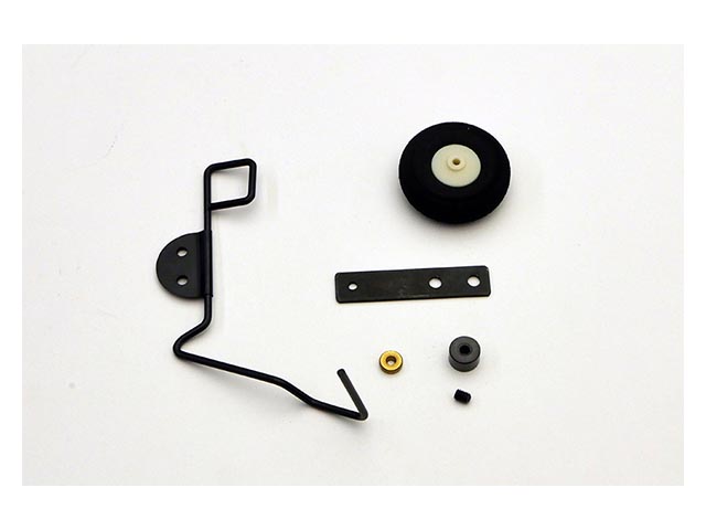 2車輪式の中小型機の尾輪に使用するシンプルなピアノ線製の尾輪支柱と軽量スポンジタイヤのセットです。