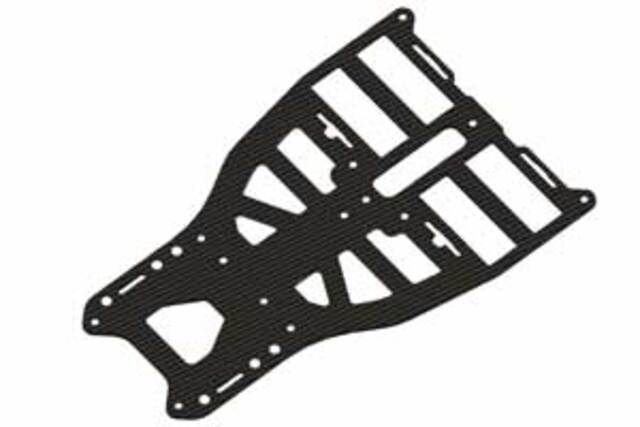 シャーシ外形のくびれを無くしシャーシ剛性を向上させ、フロント部の肉抜きを変更しサスアームマウント部の剛性も向上させたインドアサーキット等のハイグリップ路面に最適なハイトラクションシャーシ。