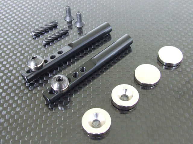 オリジナル設計の『ラウンドシェイプ・ワッシャー』と『テーパーホール付・強力ネオジウム磁石』を採用し、最大約8度の取り付け角度を実現した、マグネット式ボディーマウントです。