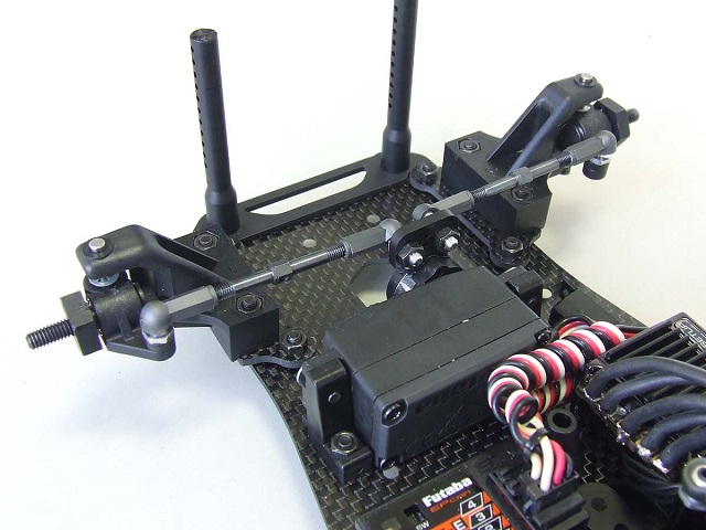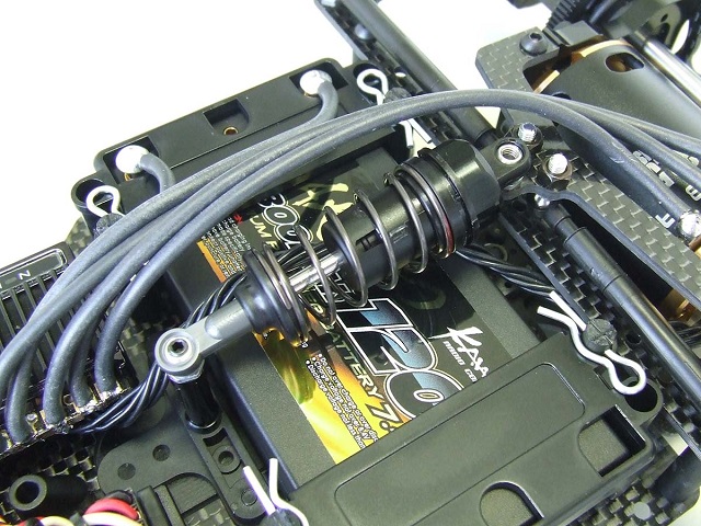 ■カーボン製シャーシ(t=2.1mm) ■カーボン製アッパーブレース(t=2.1mm)■カーボン製ダンパーブレース(t=2.1mm)■カーボン製サススレート(t=2.1mm) ■カーボン製モーターマウントブレース(t=2.1mm) ■ブラックFRP製Tバー(t=1.6mm) ■ダイヤフラム式オイルダンパー ■ジュラルミン製モーターマウント(L/R) ■高剛性ステンレス製リヤシャフト ■アジャスタブル・バッテリーホルダー ■エリオット式フロントサス ■サーボセイバー ■フルボールベアリング