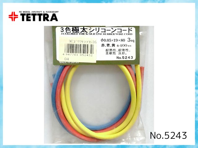 5243 3色極太シリコーン コード3sq (赤青黄) φ0.05x19x80 各400mm