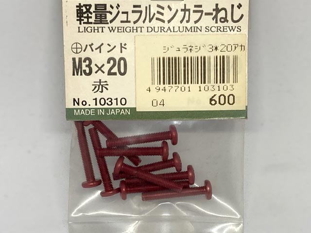 10310 軽量ジュラルミンカラーねじ +バインド M3x20 赤