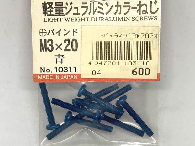 10311 軽量ジュラルミンカラーねじ +バインド M3x20 青