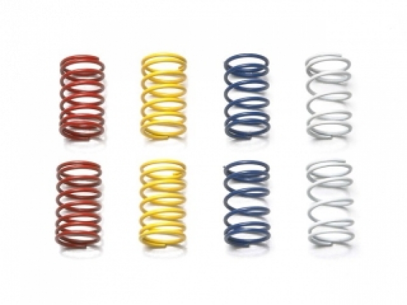 OP163と比較して高速走行時の安定性を高めるハードタイプのスプリングです。ソフト(赤)、ミディアム(黄)、ハード(青)、EXハード(白)に色分けしてあるので判別も容易です。他のスプリングと組み合わせてセッティングの幅を広げます。