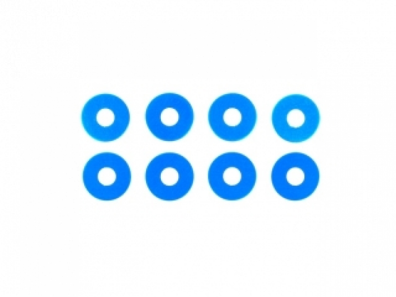 トレッド幅のセッティングに使えるスペーサー。0.5mm厚のスペーサー4枚と1mm厚のスペーサー4枚をセットしました。