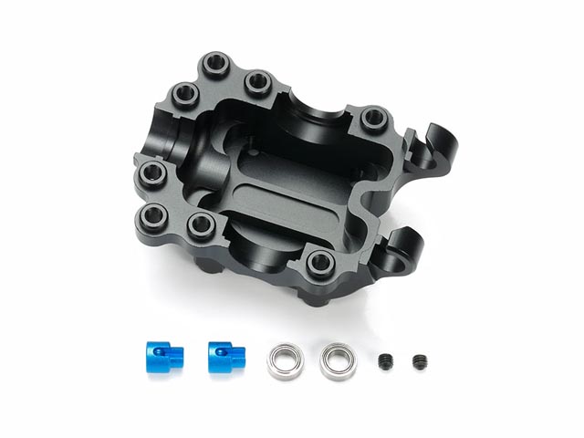 キット標準のロワギヤケースをかねるA3部品に換えて使用。高精度なアルミ切削パーツにより軸間を高精度に位置決めすることができ、駆動効率がアップします。また、スタビライザー(別売)をベアリング保持式にするための740ベアリングやスタビストッパーもセット。スムーズな動作を実現します。