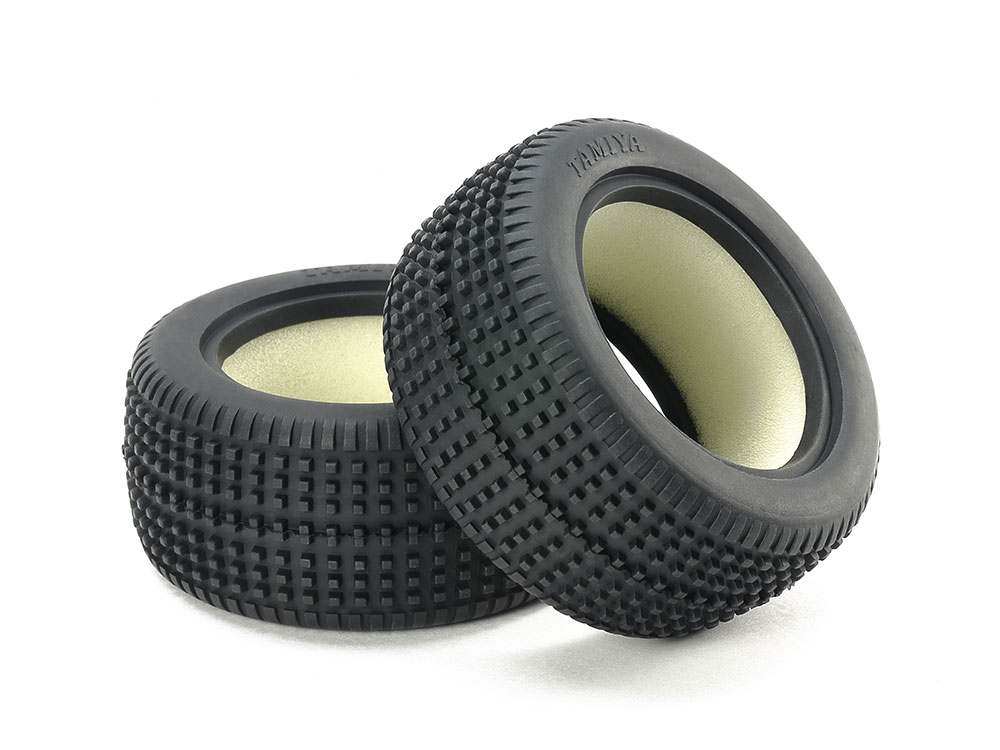 マイクロピン形状が特徴的な、ソフトコンパウンドを使用したハイグリップタイヤです。硬く締まったオフロードやカーペット路面で威力を発揮。ソフトコンパウンドの採用とインナースポンジを内蔵して走る場所を選びません。※タイヤ表面が白くなることがありますが、性能に影響はありません。