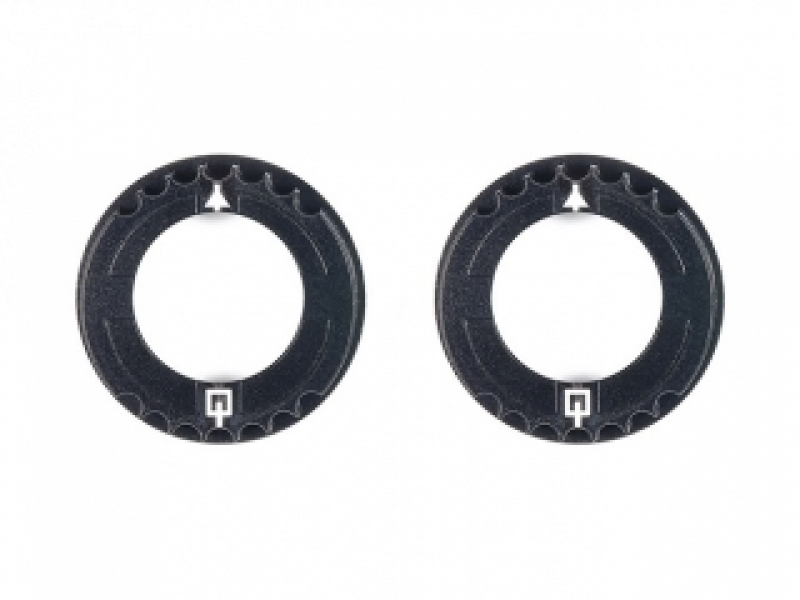 TA08やTRF系のベルト駆動4WDが採用している樹脂製のベルトテンション調整部品(K1)に換えて使用。精度・強度ともに優れたアルミ切削製のデフホルダーにより、駆動負荷時の変形が抑えられ回転効率が向上。また、バルクヘッド全体の剛性を高め、オイルダンパーの効果も的確にシャーシに伝達。キット標準仕様の0.8mmオフセットに対して0.5mmにすることで、路面状況に合わせた繊細なセッティングが可能です。