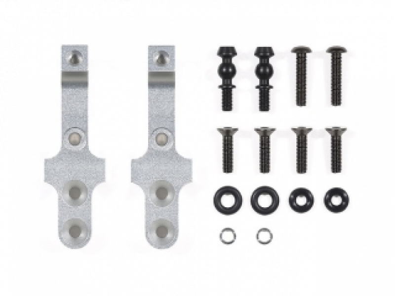 シルバーアルマイト加工されたアルミ切削製。ダンパー取り付け用の5mmボールポストやOリング、アルミスペーサー、ビス類などもセット。