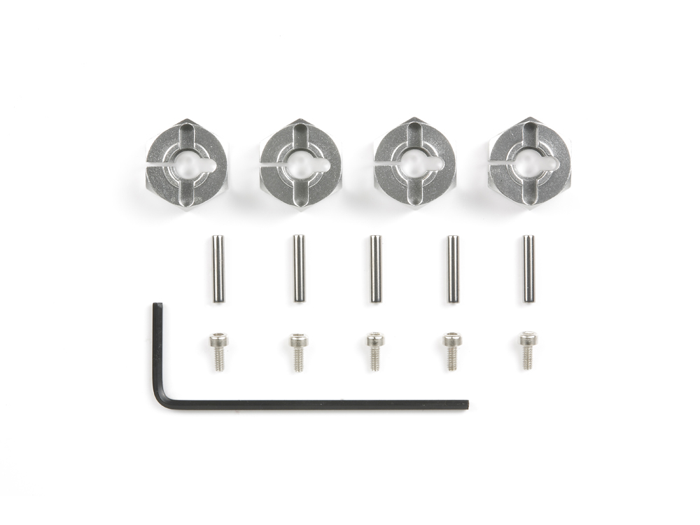 6mm厚アルミホイールハブ×4、キャップスクリュー×5、ステンレスシャフト×5などをセット