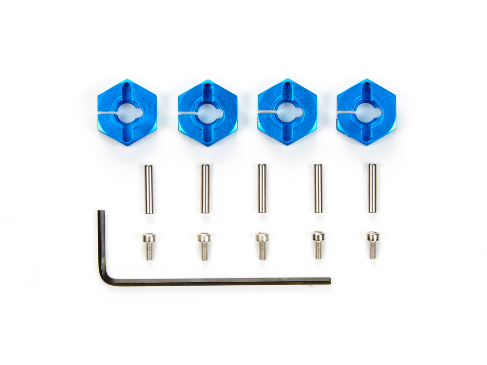 4mm厚アルミホイールハブ×4、キャップスクリュー×5、ステンレスシャフト×5などをセット