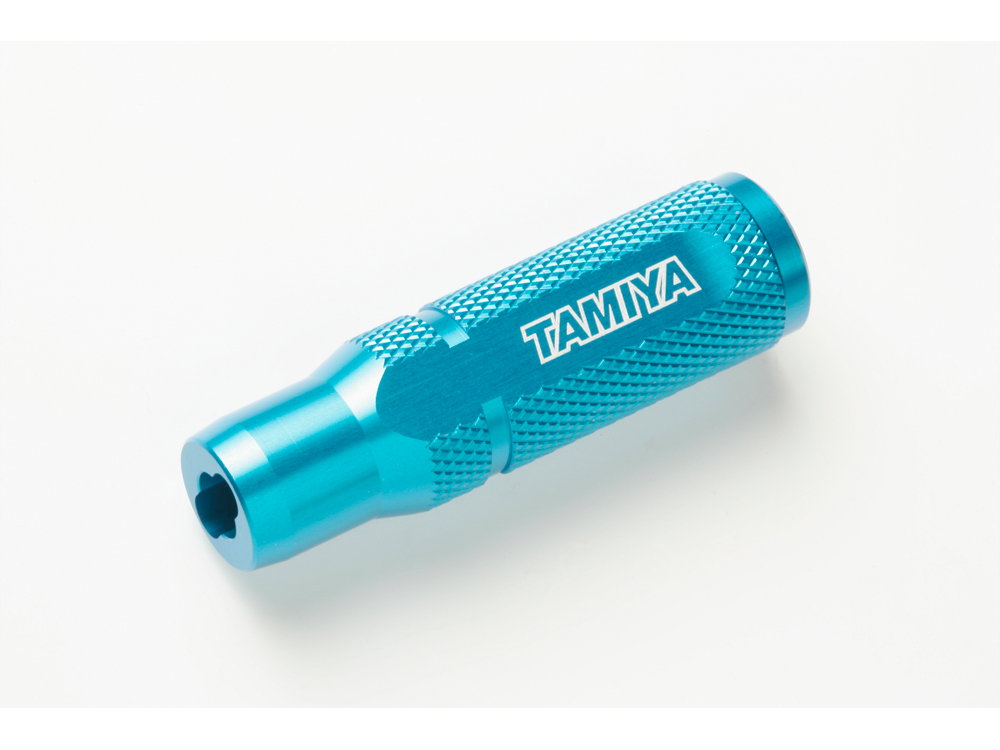 固くて手間のかかるアジャスターのねじ込み作業を手軽にします。小さな力で簡単に、しかも垂直に締め込むことができる高精度なアルミ製レンチです。タミヤの5mmサイズのボールアジャスター全てに使えます。