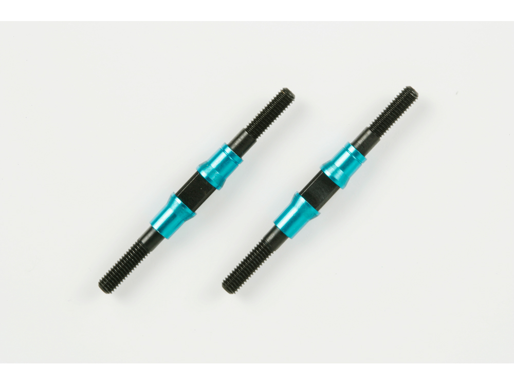 DT-02シャーシのリヤアッパーアームなどに使用するターンバックルシャフト。ロッドやアームを外すことなく、シャフトを回すだけで微妙な長さ調整が可能です。さらに、ハードなオフロード走行でも曲がりにくい強度の高さも魅力。アルマイトブルーのアルミ製カラーがドレスアップ効果も発揮します。