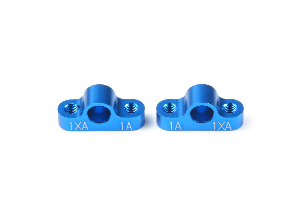 繊細なトー角セッティングが可能な高精度アルミ切削製サスマウント。左右を入れ替えることでサスマウント幅が変えられます。フロントに装備する場合はSP994またはOP709と組み合わせて使います。