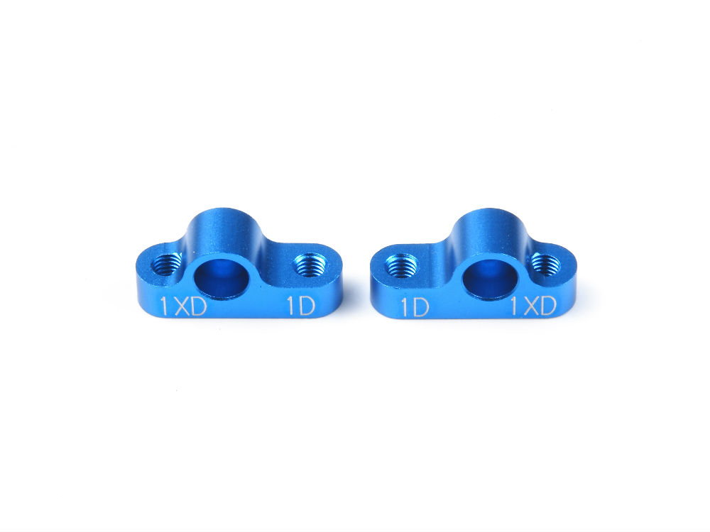 繊細なトー角セッティングが可能な高精度アルミ切削製サスマウント。左右を入れ替えることでサスマウント幅が変えられます。フロントに装備する場合はSP994またはOP709と組み合わせて使います。