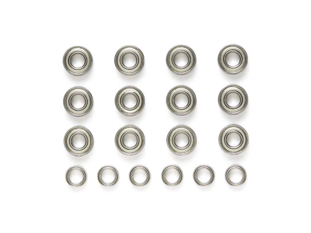 ボールベアリングの装備はチューンナップの第1歩。駆動ロスを減らして走行時間をのばし、軸受け部分の耐久性も高めます。