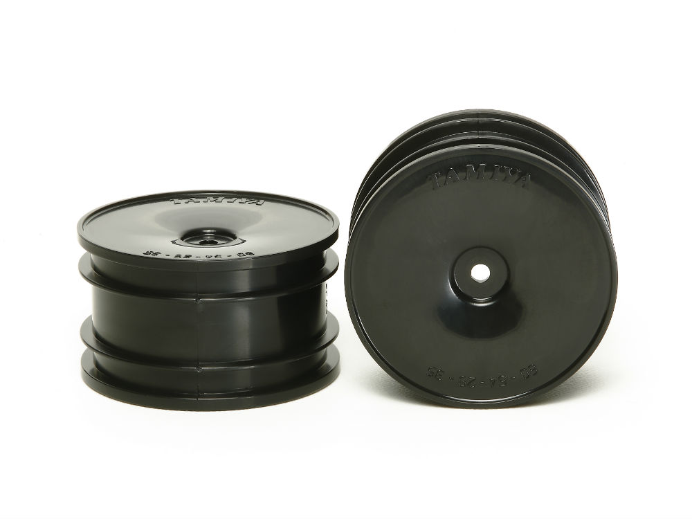 2WD、4WDバギーのリヤに使える、ドロなどが付きにくいディッシュタイプのホイールです。精悍なブラックカラーが目印。