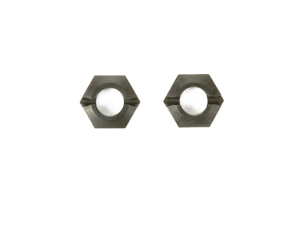 標準装備の六角ハブに対して厚みを0.5mmアップし、フロントのトレッドを1mmワイド化。セッティングの幅を広げます。DB01、DB02シャーシはもちろん、TRF511、TRF502Xシャーシキットにも使えます。