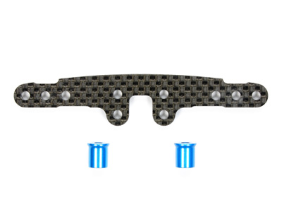 軽量で剛性が高い3.5mm厚カーボン製。ダンパー取り付け部の剛性を高めて、ダンパーの性能を最大限引き出すと共に、標準の樹脂パーツに比べて約2gの軽量化も実現しました。