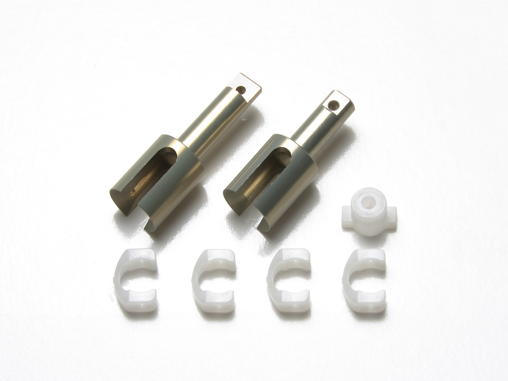 アルミ切削製デフジョイントカップに、高潤滑アルマイトを施しました。駆動系の軽量化に効果的なだけでなく、スムーズな動きも実現。さらに、ピンプロテクターも付いて、カップとシャフトの摩耗を防ぎます。