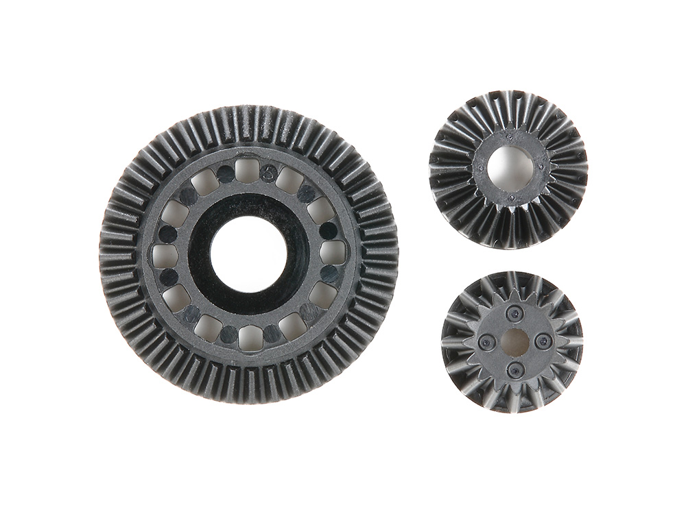 標準部品に比べて強度アップした樹脂を使用したギヤのセットです。耐久性を向上させて高性能モーターのハイパワーに耐え、駆動効率も高めます。