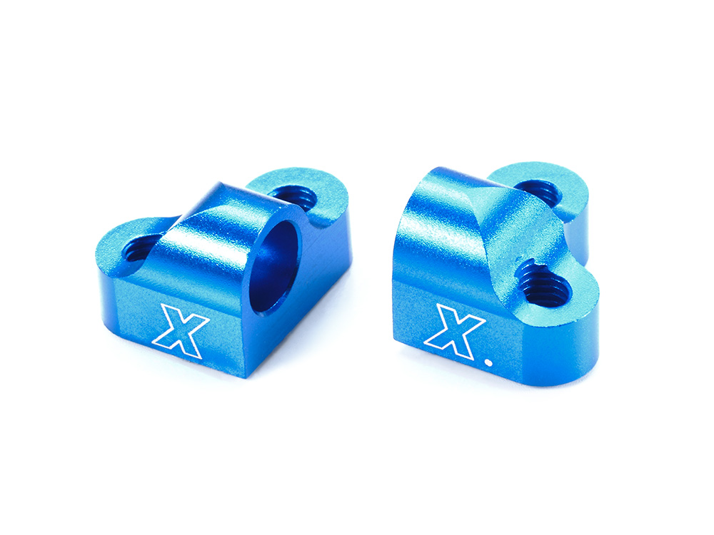 2本のビスと1箇所のボスによる3点留めとしたL型形状のアルミセパレートサスマウント。取り付け時のズレを軽減し、高強度も実現しました。主にフロントの後ろ側に使用します。