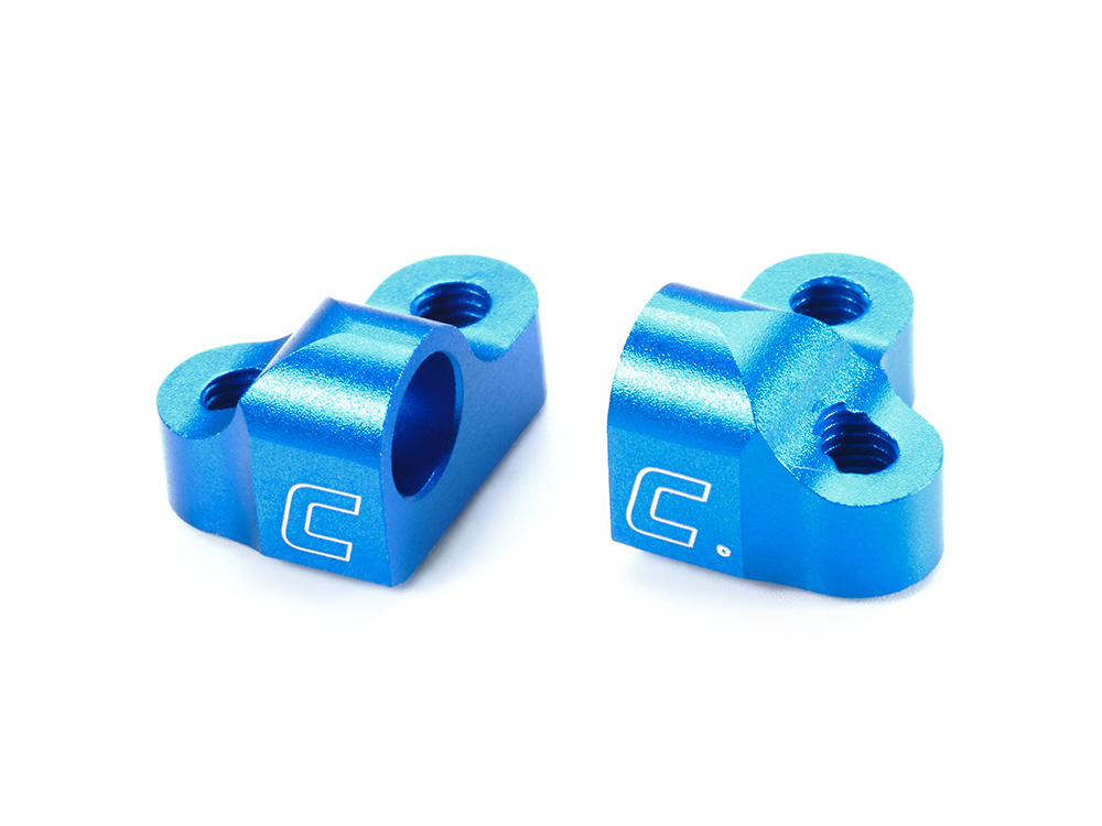 2本のビスと1箇所のボスによる3点留めとしたL型形状のアルミセパレートサスマウント。取り付け時のズレを軽減し、高強度も実現しました。主にフロントの後ろ側に使用します。