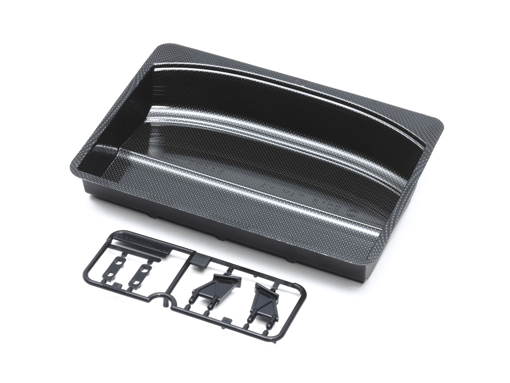 RCカーにとっても空力セッティングの大きな役目を果たすリヤウイング。コースレイアウトや操縦特性に合わせて選べる、湾曲したラウンドタイプとストレートタイプの2種類のウイングをセット。どちらも、カーボンパターンが印刷され、いっそうレーシーなムードに仕上がります。