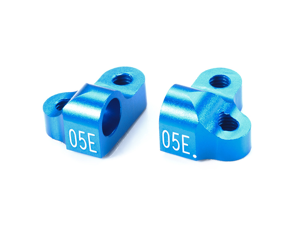 TRF419Xのワイドサスペンションに合わせて、ロールセンターを0.5mm下げたサスマウントです。2本のビスと1箇所のボスによる3点留めとしたL型形状により取り付け時のズレを軽減し、高強度も実現しました。主にフロントに使用します。