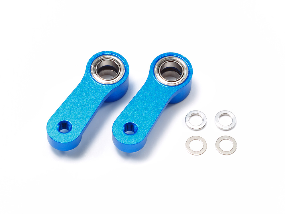 キット標準の樹脂製ステアリングアーム(A4パーツ)に換えて使用。850ベアリングを圧入したアルミ切削製アームがガタのないシャープな作動を生み出し、高速走行時のハンドリング精度を高めます。