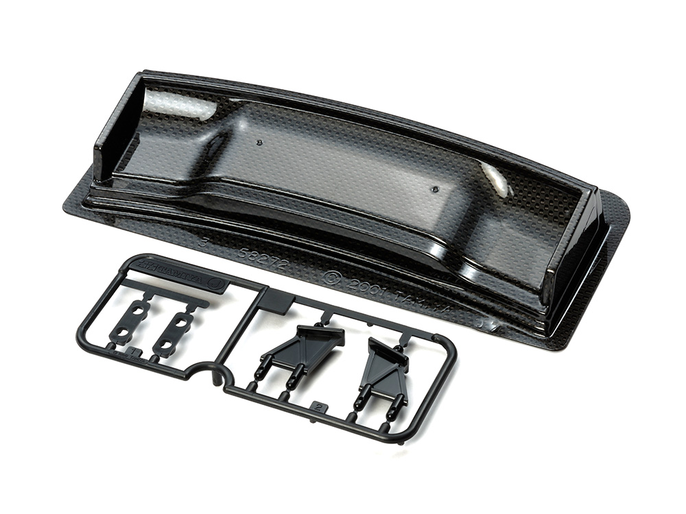中央部分に段差がついたレーシングウイング タイプαにカーボンパターンを印刷。カットするだけで、レーシーなカーボン調のリヤウイングに仕上がります。RCカーにとっても重要な空力デバイスだけに、セッティングも楽しみです。