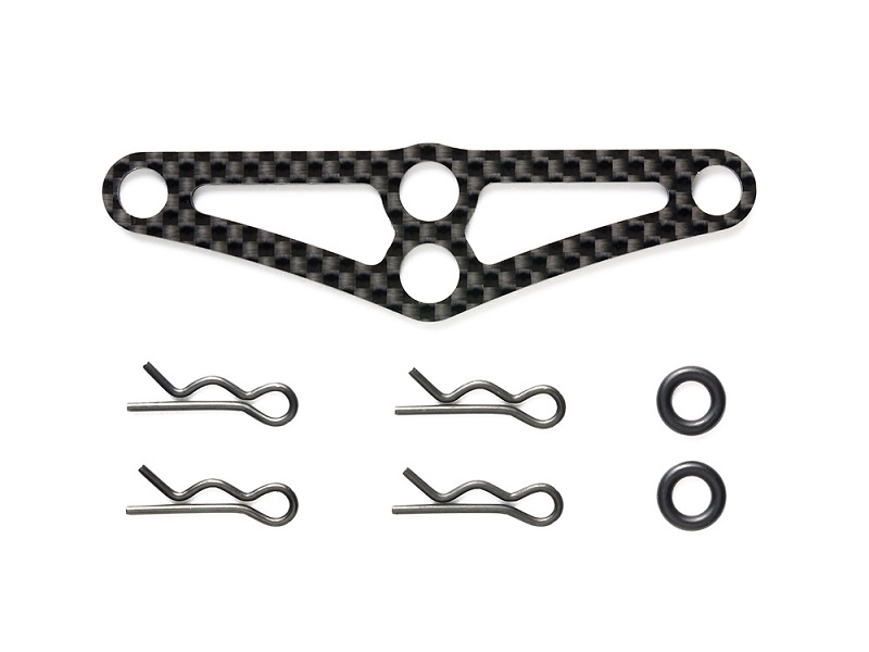 ツーリングカーのフロント・ボディマウントの支持剛性を高めるカーボン製のメンバーです。左右のボディマウントを連結してたわみを抑え、ボディのバタつきを防止します。また、タイム計測用の発信器の取り付け(2箇所選択)も可能です。 ★2mm厚カーボン製