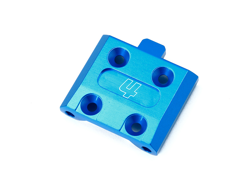 標準装備のB1部品に換えて使用するアルミ製フロントサスマウント。サスアームの取り付け剛性を高め、ハンドリング精度を改善します。さらに、キット標準のB1(5度)に対してスキッド角を4度に設定。コーナリング時の荷重移動が軽快になる、低速コース向きのセッティングです。