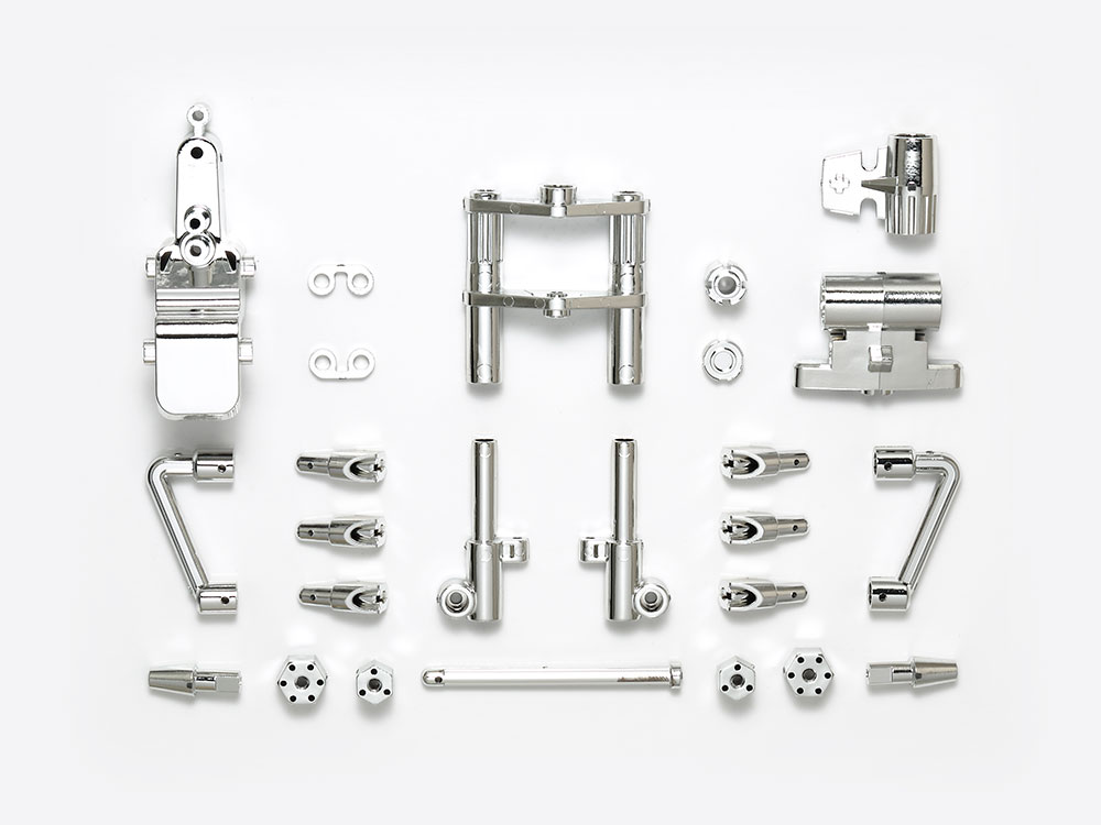 メッキ加工されたT3-01シャーシ用フロントフォーク