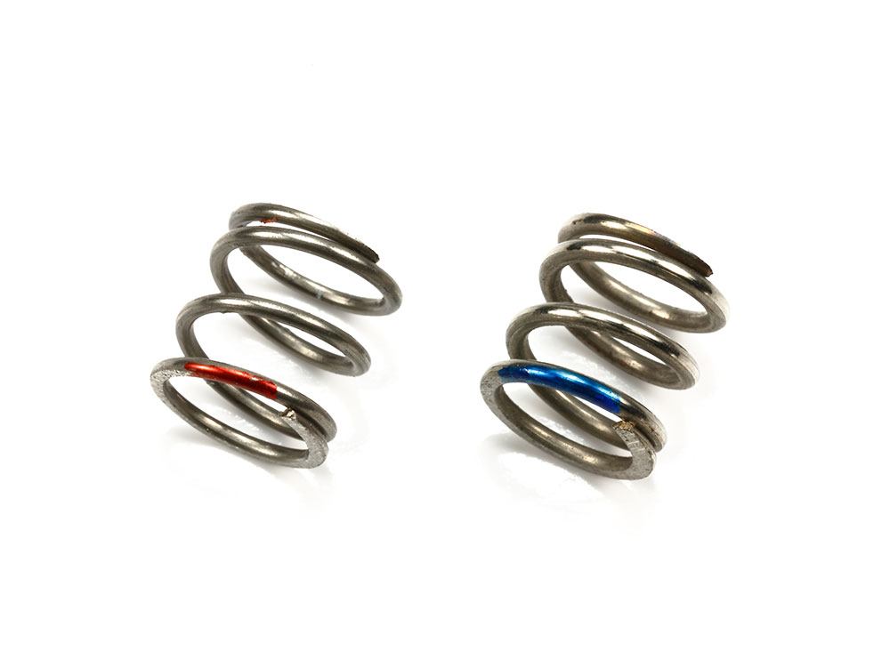 標準装備のMA10スプリングに換えて使用します。ソフト(赤)、ハード(青)のスプリングを用意して、走行条件やスピードに合わせてスプリングを選ぶことで操縦特性のセッティングができ、走りをいっそう楽しくします。