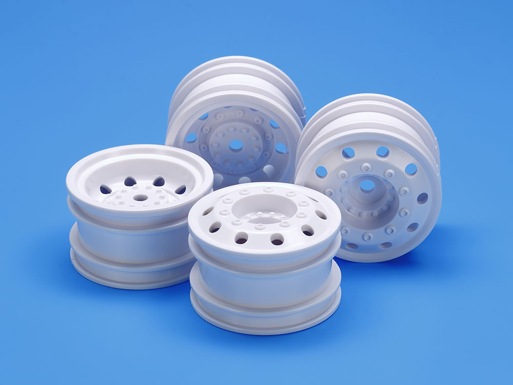 ABS樹脂製。ホワイトカラーの前後ホイールを各2本ずつセットTT-02RRシャーシ