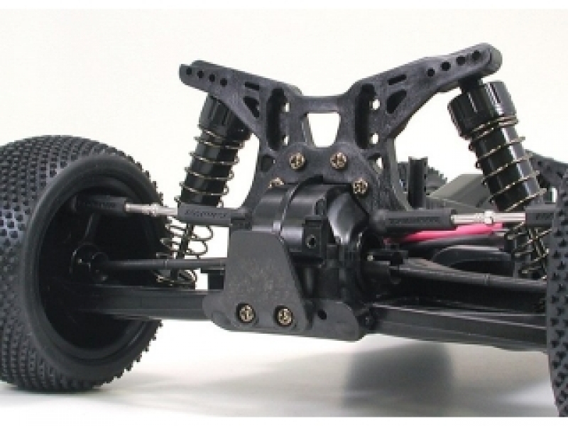 高効率な2ベルト4WDを採用し、サスペンションはTRF501Xと基本的に同様のジオメトリーを持つ4輪ダブルウィッシュボーン。アッパーアームにターンバックルを使用し、ダンパーピボットを複数配置するなど幅広いセッティング性能を持たせました。