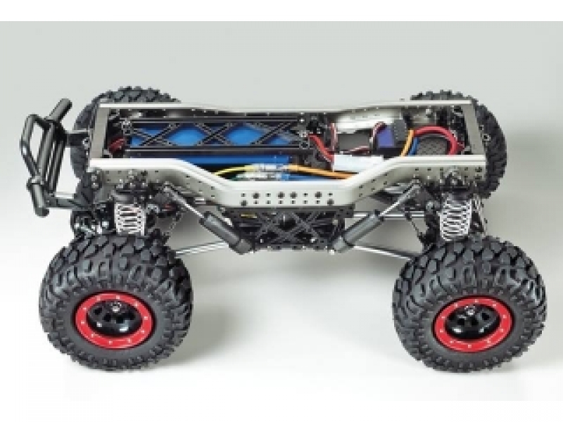 【 度肝を抜く走破性で道なき道にチャレンジ! 】 見上げるような岩場の斜面を登っていくロッククローリングと走行タイムを競うスピードレースをミックス。アメリカで人気を集める実車の競技用車両「ロックバギー」をイメージさせる電動ラジオコントロールカーの組み立てキットです。レーシングトラックを思わせるボディは軽量でショックに強いポリカーボネート製。多くのスポンサーステッカーなどを用意して、ムードたっぷりに仕上がります。シャーシはハードなロッククローリングもこなすCR-01。アルミ製サイドメンバーと樹脂製クロスメンバーで構成された高剛性なラダーフレームに、オイルダンパー付きのアルミロッド製4リンクサスペンションを装備。スプリングはプログレッシブ効果のあるバレルタイプを採用しました。また、モーターをほぼ車体中央に搭載し、プラネタリーギヤで減速したシャフトドライブ4WDは前後ともデフロック仕様が基本。タイヤをがっちり挟み込むビードロックホイールには、ブロックがサイドに回り込んだトレッドパターンを持つ大径タイヤを装着しました。