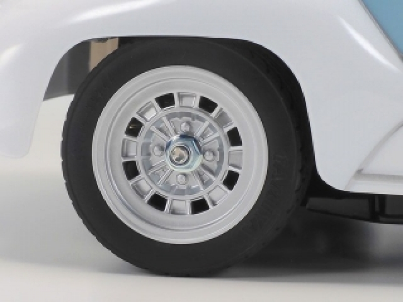6、 アバルトパターンとも呼ばれるシルバーカラーのホイールに前輪は直径55mm、後輪は直径60mmのラジアルタイヤを装着。