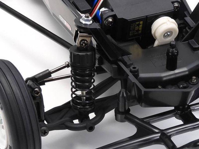 3、 CVAオイルダンパーを装備し、アッパーアームにターンバックルシャフトを使用したダブルウィッシュボーンタイプのフロントサス。キャンバー角調整もでき、軽快な走行が楽しめます。