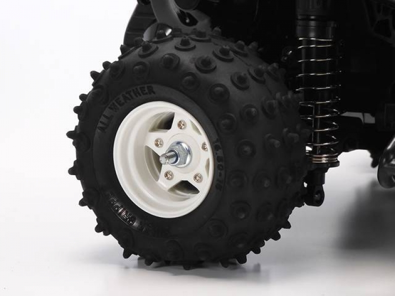6、 後輪はハイグリップなスパイクタイヤを装着。ホイールは前輪と同じ3分割構成。