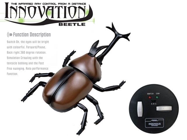 RCに昆虫シリーズが登場! ボディのリアルさはもちろん、脚の細部やカブト虫特有の目を引く大きなツノまでしっかりと再現。前進・右回転・オート機能を搭載しています(足ではなく下部のホイールにより走行、足は動きます。※飛行しません)。