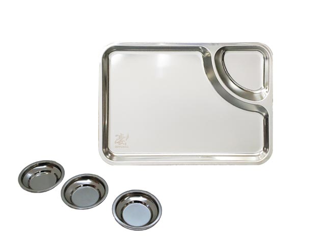 ステンレス製の万能なプレートが×1枚と塗料小皿×3枚がセットになっています。
